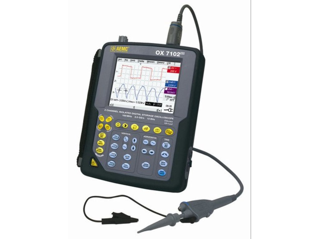 The OX7102III 100MHz can be controlled using either the “Windows-like” menus on the touch screen or 33 dedicated keys offering direct access to the most frequently-used functions. For even better performance in the field, it offers a new patented system of “plug and plays” accessories, individual insulation of each of the measurement channels, the extensive remote management possibilities offered by the Ethernet link with a WEB server, and a variety of built-in instruments, including a 200kHz multi-channel multimeter.