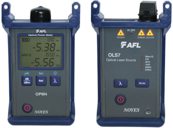 The AFL SLP4 are rugged kits for loss testing and certifying fiber networks to industry standards. Each kit includes a triple-wavelength optical source plus OPM4 optical power meter. The OPM4's backlit display is easily viewed in both dimly lit and direct sunlight environments. Interchangeable adapters connect to common optical network interfaces and provide easy access for cleaning launch and receive ports. OLS7 Triple Wavelength Laser Sources are single-port laser light sources designed for performing insertion loss measurements on single-mode fiber optic links. Capable of transmitting highly stabilized output at one, two or three wavelengths, OLS7 sources enable fast and accurate insertion loss testing per current TIA/EIA requirements. The OLS7-FTTx are designed for testing FTTx networks with 1310, 1490, and 1625 nm wavelengths. OPM4 Optical Power Meter provides accurate power and loss measurements, reference storage for each calibrated wavelength, and detects multiple test tones for fiber identification. Set-Ref feature allows the OPM4 to display measured power levels relative to a stored measured level. Automatic Wavelength Identification Significantly Increases Efficiency Standard Wave ID feature automatically detects and sets the receive wavelength(s), preventing setup and measurement errors. It significantly increases efficiency and reduces technician errors, saving test time by eliminating the need to test each wavelength individually. Optical References Storage The OPM4 stores optical references for each calibrated wavelength and detects multiple test tones for fiber identification.
