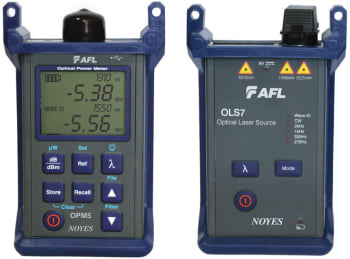The AFL SLP5 (single-mode loss test kits) are rugged kits for loss testing and certifying fiber networks to industry standards. Each SLP5 kit includes a triple-wavelength laser source and OPM5 optical power meter. The OPM5's backlit display is easily viewed in both dimly lit and direct sunlight environments. Interchangeable adapters connect to common optical network interfaces and provide easy access for cleaning launch and receive ports. OLS7 Triple Wavelength Laser Sources are single-port laser light sources designed for performing insertion loss measurements on single-mode fiber optic links. Capable of transmitting highly stabilized output (single, dual, or triple wavelength), OLS7 ensures fast and accurate loss test results per current TIA/EIA requirements. The OLS7-3 offers 1310, 1550, and 1625 nm wavelengths for testing applications such as Telecom and CATV. OPM5 Optical Power Meter provides accurate measurements, reference storage for each calibrated wavelength, detects multiple test tones for fiber identification (Wave ID), and provides in-unit data storage. The simple to use interface allows for easy separation of test results into files. Integrated file management provides easy access to results and keeps cable/job results separated for fast customer report generation. Quickly transfer test results to PC via USB interface. Automatic Wavelength Identification Significantly Increases Efficiency Standard Wave ID feature automatically detects and sets the receive wavelength(s), preventing setup and measurement errors. It significantly increases efficiency and reduces technician errors, saving test time by eliminating the need to test each wavelength individually. Test Results Storage, Transfer, and Post Processing with TRM The OPM5 file management system allows technicians to organize test results into multiple files. Stored OPM results may be transferred to PC via USB port for viewing, analysis, and professional report generation using the included Windows compatible TRM Basic Test Results Manager software. TRM allows users to apply standards-based rules and create comprehensive certification reports complete with Pass/Fail results and calculated headroom.