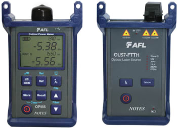 The AFL SLP5 (single-mode loss test kits) are rugged kits for loss testing and certifying fiber networks to industry standards. Each SLP5 kit includes a triple-wavelength laser source and OPM5 optical power meter. The OPM5's backlit display is easily viewed in both dimly lit and direct sunlight environments. Interchangeable adapters connect to common optical network interfaces and provide easy access for cleaning launch and receive ports. OLS7 Triple Wavelength Laser Sources are single-port laser light sources designed for performing insertion loss measurements on single-mode fiber optic links. Capable of transmitting highly stabilized output (single, dual, or triple wavelength), OLS7 ensures fast and accurate loss test results per current TIA/EIA requirements. The OLS7-FTTx is designed for testing FTTx networks at 1310, 1490, and 1625 nm wavelengths. OPM5 Optical Power Meter provides accurate measurements, reference storage for each calibrated wavelength, detects multiple test tones for fiber identification (Wave ID), and provides in-unit data storage. The simple to use interface allows for easy separation of test results into files. Integrated file management provides easy access to results and keeps cable/job results separated for fast customer report generation. Quickly transfer test results to PC via USB interface. Automatic Wavelength Identification Significantly Increases Efficiency Standard Wave ID feature automatically detects and sets the receive wavelength(s), preventing setup and measurement errors. It significantly increases efficiency and reduces technician errors, saving test time by eliminating the need to test each wavelength individually. Test Results Storage, Transfer, and Post Processing with TRM The OPM5 file management system allows technicians to organize test results into multiple files. Stored OPM results may be transferred to PC via USB port for viewing, analysis, and professional report generation using the included Windows compatible TRM Basic Test Results Manager software. TRM allows users to apply standards-based rules and create comprehensive certification reports complete with Pass/Fail results and calculated headroom.