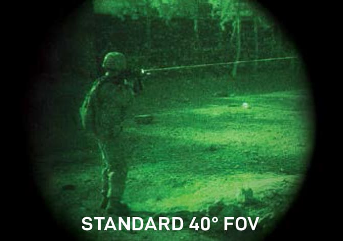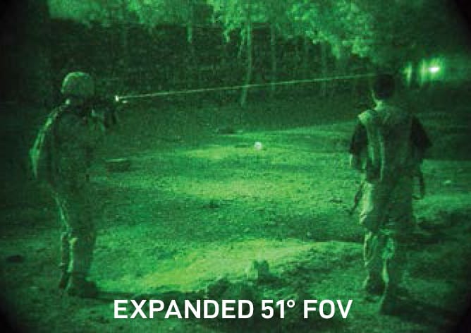 The AGM Global Vision NVG-50 is a dual-channel night vision system. The rotating binocular design allows low profile against helmet when in the stowed position and the ability to use as a single monocular. The binocular design also allows for sustained viewing periods and improved depth perception. With a 51° field of view, it provides a large visual field without requiring the operator to shift the position of the device. The NVG-50 uses advanced multi-coated optics and is built to last with compact composite housing. The device can be outfitted with either a Gen 2+ or Gen 3 high-performance image intensifier tube (available in P43-Green phosphor or P45-White phosphor). The NVG-50 features a bright light cut-off feature that ensures that the high-quality photocathode tube is protected. The NVG-50 is also equipped with Manual Gain Control, which adjusts the image brightness, providing the highest possible image quality even in changing light conditions. Operating from a single AA alkaline battery or CR123A battery, the NVG-50 can run up to 20 hours. Also equipped with an integral infrared illuminator for reading in the dark. The AGM Global Vision NVG-50 includes a preinstalled NVG Interface Shoe to be used for installing the NVG to either a standard dovetail type headset or helmet mount. The NVG-50 also includes a Bayonet/Horn Interface Shoe for installing the NVG to either a standard bayonet/horn-type headset or helmet mount. The NVG-50 is also available in an 'Advanced Performance' (AP) model which increases the performance and has a higher FOM (Field of Merit). These models are the highest resolution and cleanest field of view offered by AGM Global Vision. There are practically no visible spots in Zone 1.