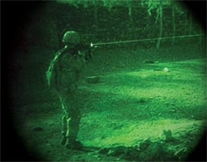 The Wolf-14 can be hand-held or mounted on a helmet or headgear. A specialized mount enables use with a rifle and the ability to mount in front of a camcorder or camera makes it ideal for night photography. With a variety of compatible lenses, long-range nighttime viewing is available in seconds. The Wolf-14 features bright light shut-off circuitry and a built-in spot/flood IR illuminator. The Wolf-14 can be equipped with high performance Gen 2 image intensifier tubes in green or white phosphor.
