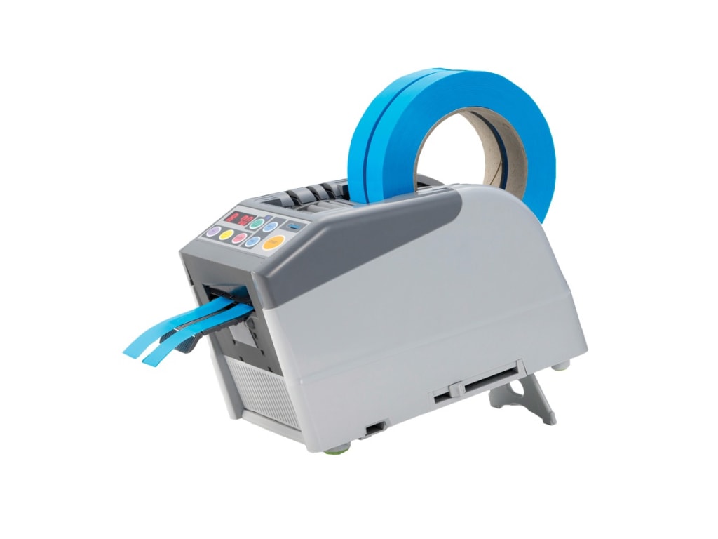 The ASG GR Tape Dispenser features up to six different cut lengths that can be programmed to cut by selection or in sequence. The dual photo sensors allow two rolls of tape to be cut at the same time. It uses a range of tape thicknesses from 0.002" to 0.012". Usable tapes include but are not limited to Craft, PP, Vinyl, Filament, Glass Cloth, Double-Sided, Strapping, Protective Film, and Aluminum Foil.