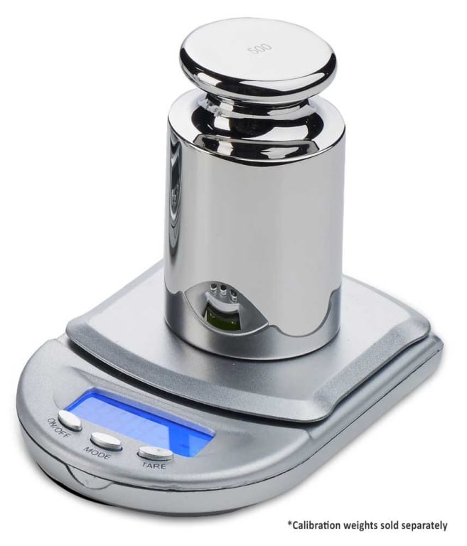 Available with either a 100g or 500g capacity, these digital balances feature an easy-to-read, backlit, liquid crystal display. Buttons for ON/OFF, MODE and TARE are located on the front for easy access. The software includes a calibration function for in-lab calibration with a 100g or 500g calibration weight. Calibration weights are available separately.