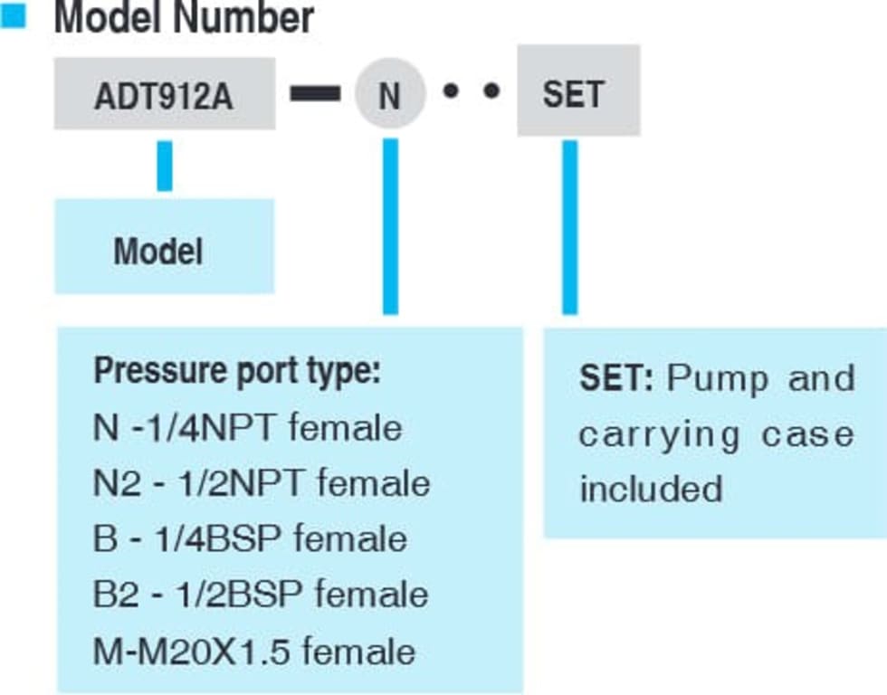 Most pumps make use of a check valve (non-returning valve) and are not well insulated which will cause large fluctuations in pressure with a change in ambient temperature or when the unit is touched. The 912A does not use a check valve and is remarkably stable. Two hand-tight connectors installed on the pump allow easy connecting and disconnecting to the test pump without the need for PTFE tape or wrenches.