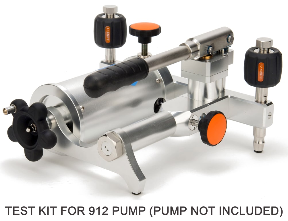 Most pumps make use of a check valve (non-returning valve) and are not well insulated which will cause large fluctuations in pressure with a change in ambient temperature or when the unit is touched. The 912A does not use a check valve and is remarkably stable. Two hand-tight connectors installed on the pump allow easy connecting and disconnecting to the test pump without the need for PTFE tape or wrenches.