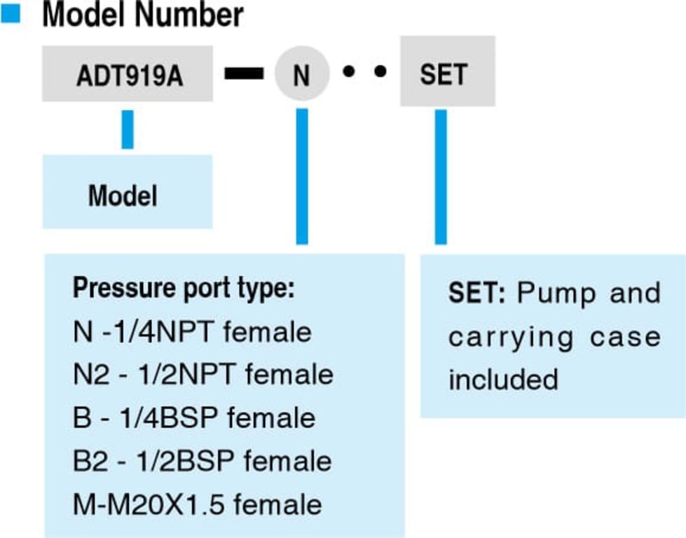 The Additel 919A High-Pressure Test Pump is a hand-operated pressure pump designed to generate pressure from 95% vacuum to 2,000psi (140bar). With a long lever, it just takes 30 seconds to reach 2,000 psi (140 bar). A high-quality screw press is designed for fine pressure adjustment, with an adjustment resolution up to 0.001 psi (10 Pa , 0.1 mbar). A specially designed shut-off valve makes the pressure as stable as possible during calibration. A built-in gas-liquid isolator protects the pump from moisture and dirt to reduce the need for maintenance. The residual liquid in the pump introduced from the devices under test will be collected and then pushed out during pressure release. Two hand-tight quick connectors installed on the pump allow easy connecting and disconnecting to the test pump without the need for PTFE tape or wrenches. The 919A is an ideal comparison test pump for pressure instrument calibration.