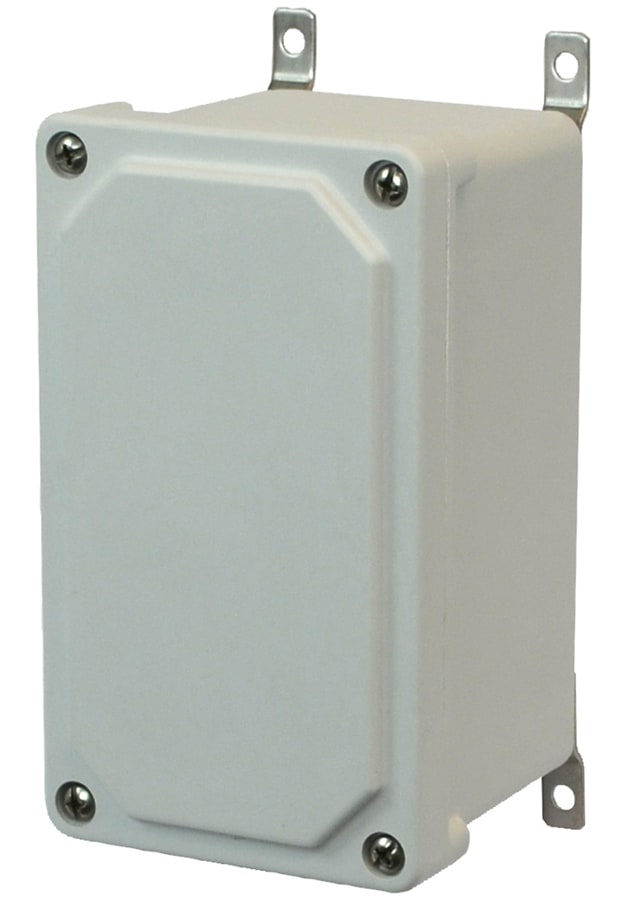 Allied Moulded AM743 7x4x3 Junction Fiberglass JIC Enclosure with Lift-Off 4-Screw Solid/Opaque Cover and Mounting Feet