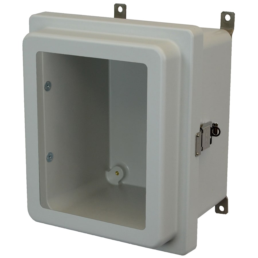 Allied Moulded AM864RLW 8x6x4 NEMA 4X Fiberglass Enclosure with Raised Snap Latch Hinged Cover & Window