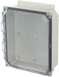 The AMP polycarbonate series was developed primarily for general purpose industrial applications as an alternative to steel enclosures. The design of this product group is similar to the ULTRALINE® series and includes a provision for adjustable HFP (hinged front panel) position. Additional POLYLINE® options include a clear cover, nonmetallic snap latches, and patented multi-mounting capabilities. Available sizes include 6" x 6" x 4" (152mm x 152mm x 102mm) up through 18" x 16" x 10" (457mm x 406mm x 254mm).