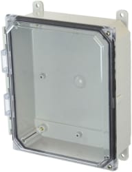 The AMP polycarbonate series was developed primarily for general purpose industrial applications as an alternative to steel enclosures. The design of this product group is similar to the ULTRALINE® series and includes a provision for adjustable HFP (hinged front panel) position. Additional POLYLINE® options include a clear cover, nonmetallic snap latches, and patented multi-mounting capabilities. Available sizes include 6" x 6" x 4" (152mm x 152mm x 102mm) up through 18" x 16" x 10" (457mm x 406mm x 254mm).