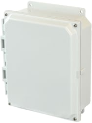 The AMP polycarbonate series was developed primarily for general purpose industrial applications as an alternative to steel enclosures. The design of this product group is similar to the ULTRALINE® series and includes a provision for adjustable HFP (hinged front panel) position. Additional POLYLINE® options include a clear cover, nonmetallic snap latches, and patented multi-mounting capabilities. Available sizes include 6" x 6" x 4" (152mm x 152mm x 102mm) up through 18" x 16" x 10" (457mm x 406mm x 254mm).