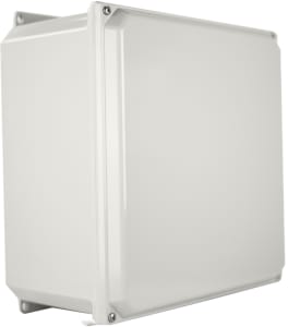12″x12″x6″ POLYLINE® polycarbonate wall mount enclosure assembly with 4-screw lift-off cover.
