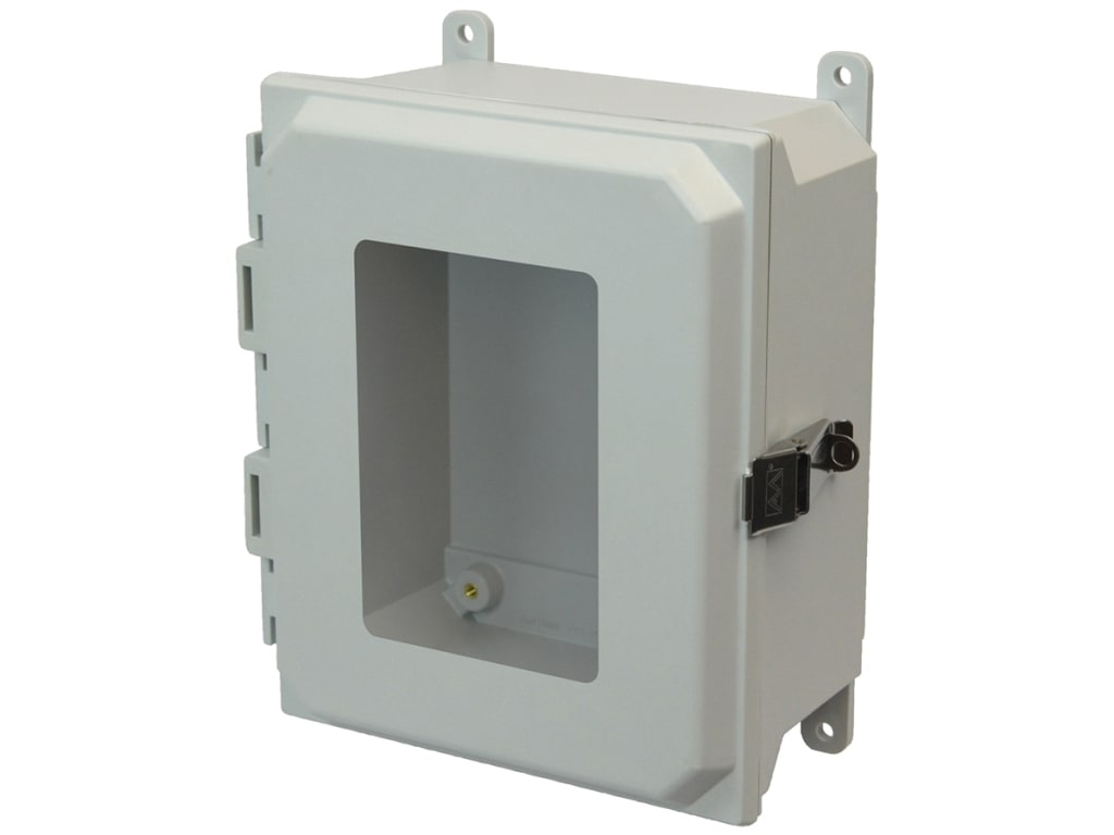 Allied Moulded AMU1084LW 10x8x4 NEMA 4X Fiberglass Enclosure with Snap Latch Hinged Cover and Window