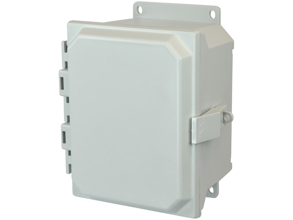 Allied Moulded AMU1084NLF 10x8x4 NEMA 4X Fiberglass Enclosure Nonmetal Snap Latch Hinged Solid/Opaque Cover
