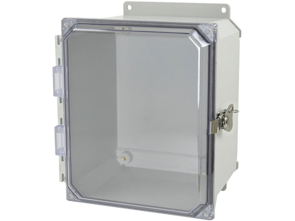 Allied Moulded AMU1086CCTF - 10″x8″x6″ Fiberglass Wall Mount Enclosure Assembly with Hinged Clear Cover and Stainless-Steel Twist Latch