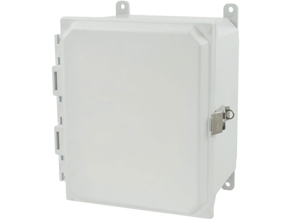 Allied Moulded AMU1086T - 10″x8″x6″ Fiberglass Wall Mount Enclosure Assembly with Hinged Cover and Stainless-Steel Twist Latch