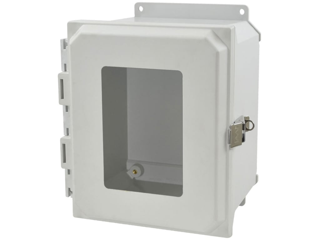 Allied Moulded AMU1086TWF - 10″x8″x6″ Fiberglass Wall Mount Enclosure Assembly with Hinged Window Cover and Stainless-Steel Twist Latch