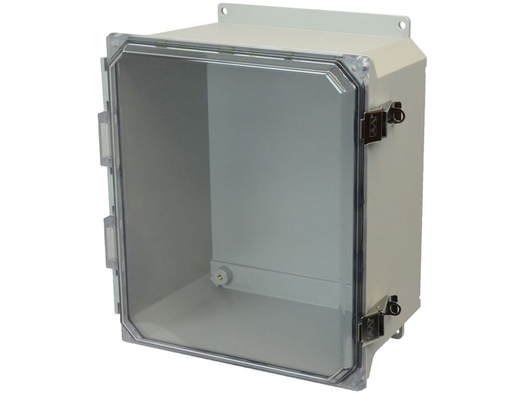 Allied Moulded AMU1426CCLF 14x12x6 NEMA 4X Fiberglass Enclosure with Snap Latch Hinged Clear Cover & Flange