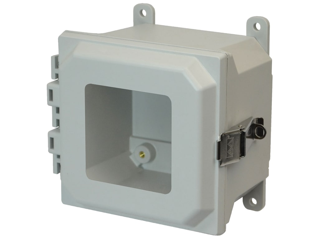 Allied Moulded AMU664LW 6x6x4 NEMA 4X Fiberglass Enclosure with Snap Latch Hinged Cover and Window