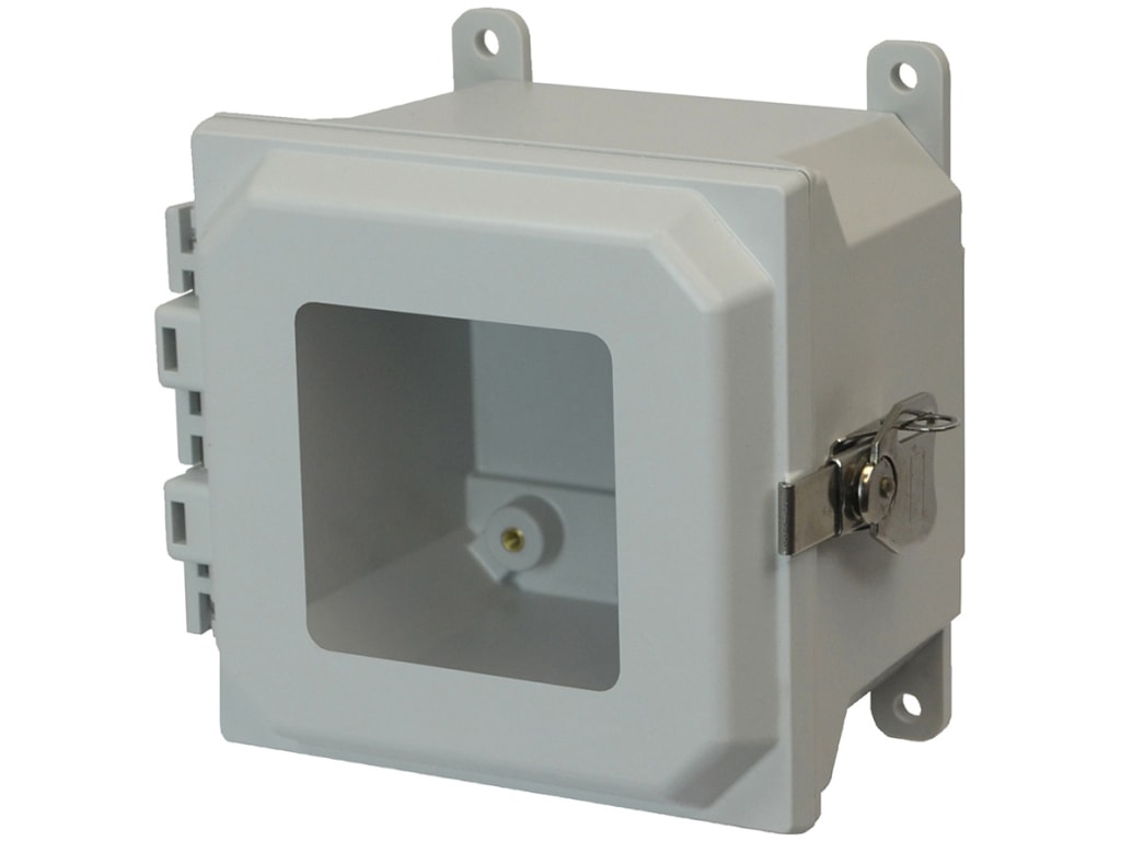6x6x4 NEMA 4X FBRGLS ENCL TWIST LATCH HINGED CVR WINDOW FLANGE MOUNT