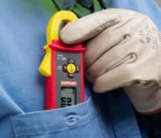 Troubleshoot electrical systems and measure AC/DC load current on exposed wires in a breaker panel.