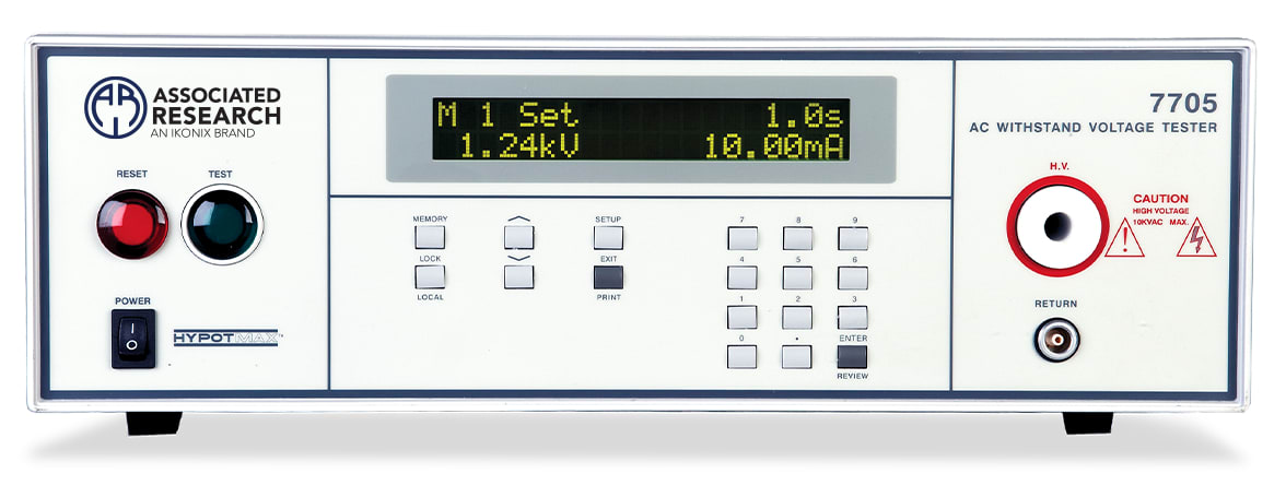 The Associated Research HypotMAX Series is a complete line of automated Hipot instruments designed to meet the demanding requirements of high voltage applications. Associated Research has included its patented SmartGFI feature for maximum operator safety, as well as a variety of advanced features to increase productivity on the production line and in the lab. Set up and run tests with confidence from the intuitive user interface or automate with a PC. The HypotMAX is available in both AC and DC formats: