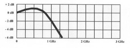 Normalization of frequency response errors when using the P-20A probe with a spectrum analyzer and tracking generator can be done the same way as the above verification. Be aware that frequency response ripple is a function of the probe and analyzer input impedance, and will be constant as long as the analyzer input attenuator is not changed. Be sure and allow for the +5.2 dB error if the signal source is NOT terminated into 50 ohms. If the signal source IS terminated into 50 ohms, the measurement error is due to the P-20A -.2 dB loading.