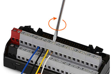 The terminal blocks feature built-in screws for secure and easy connection. The connection method provides high vibration resistance and secure and durable connection.