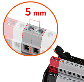 The slim and compact design with 5mm terminal pitch allows space-saving installation.