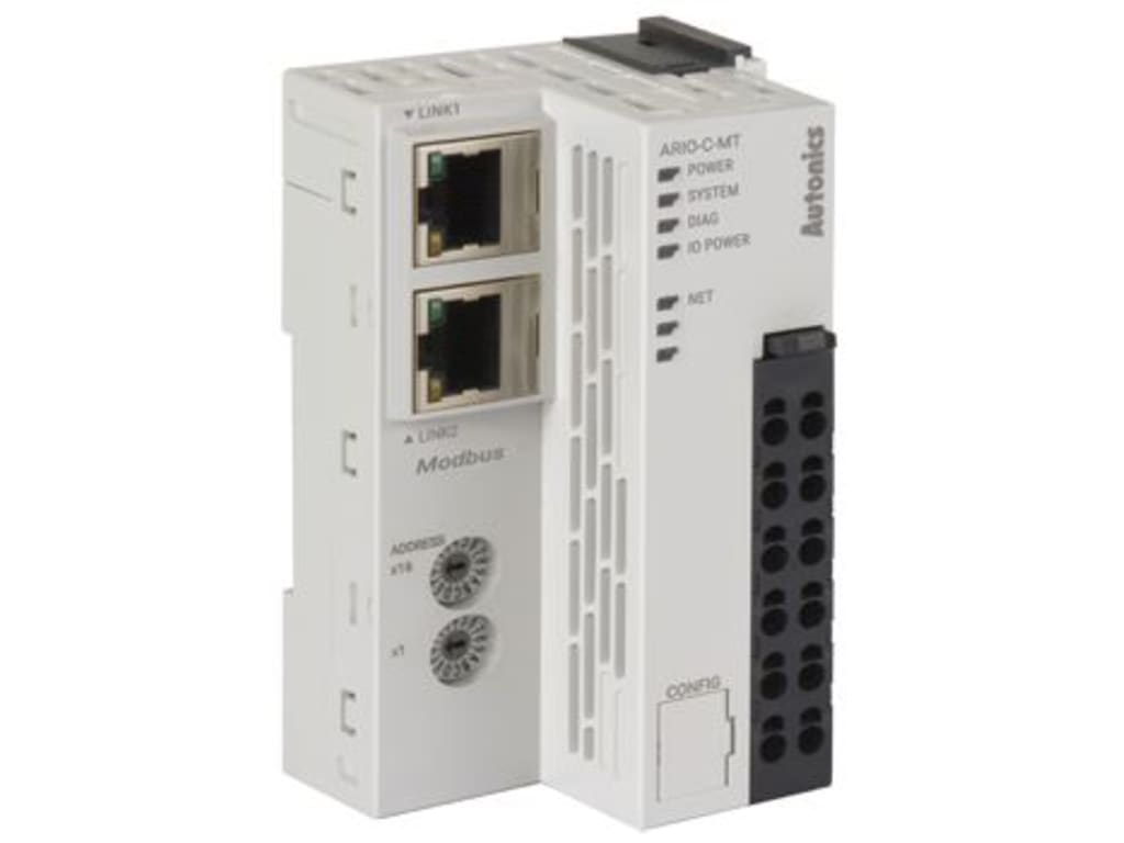 The Autonics ARIO-C-MT Modbus TCP-Based Coupler synchronizes the data of all connected I/O modules with Modbus TCP. The coupler determines the physical structure of the node and automatically creates a local process image of all the I/O. It also includes a mixed arrangement of analog (word) and digital (byte) modules.
