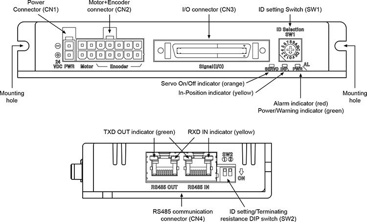 • RS485 DATA IN/OUT indicator: green/yellow LED |