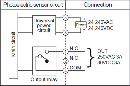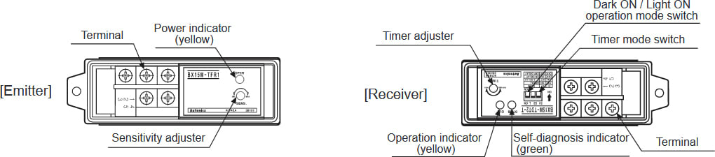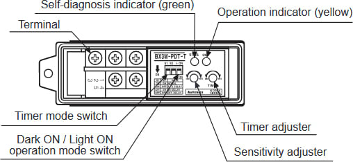 The BX series photoelectric sensors with built-in amplifiers are available in universal AC/DC types and DC types. The terminal type sensors also feature timer function to change between ON delay, OFF delay, and One-shot delay. Light ON/Dark ON operation mode switch and sensitivity adjusters are also available for easy configuration and set up. The universal AC/DC types feature a wide power supply range of 24-240 VAC / 24-240 VDC.