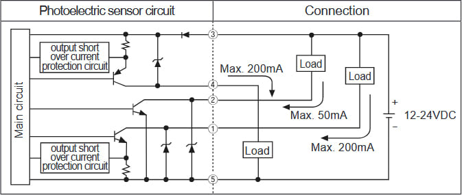 The product is not equipped with the output short over current protection circuit. If short-circuit the control output terminal or supply current over the rated specification, it may result in product damage.