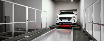 Photoelectric sensors used in parking tower pallets for presence detection of vehicles within designated areas.