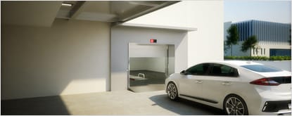 Photoelectric sensors are used to detect entry or exit of vehicles in parking towers to prevent automatic closing of doors.