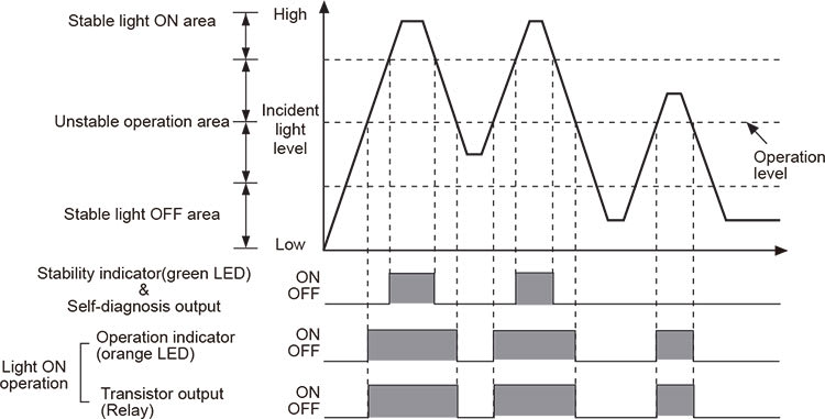 • Self-diagnosis function (Green LED is lighted in stable level.)