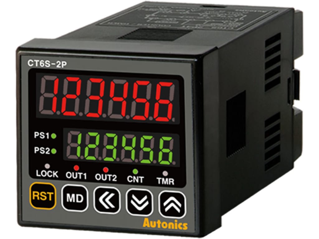 The CT series digital counter/timers are integrated units with functions of counters and timers. The units feature various input/output operation modes and load contact capacity up to 5A for flexible application in diverse industries. The RS485 models allow remote parameter configuration and monitoring via PCs. The CT series is available in 4-digit and 6-digit models in 3 standard DIN sizes (48 × 48, 72 × 72, 72 x 36 mm).
