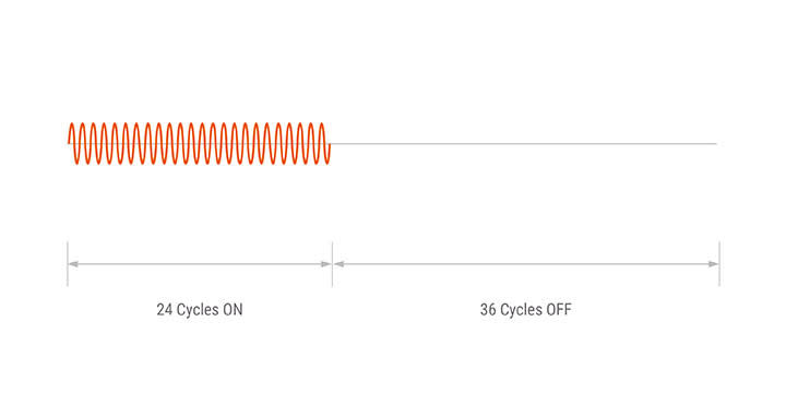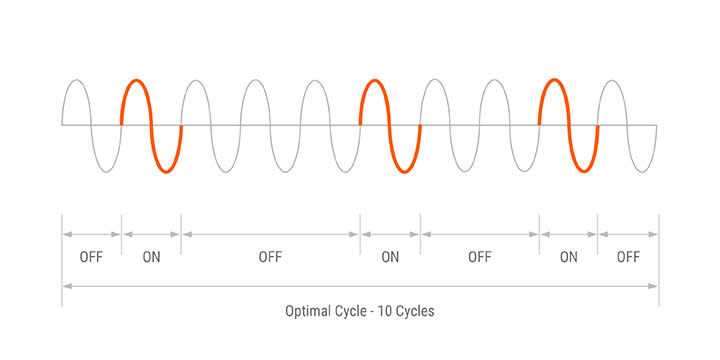 Minimal number of cycles are used as AC sine wave repeats ON/OFF control in relation to the control input signal.