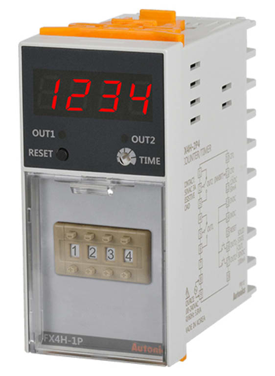 The FXM/FXH series digital counter/timers integrate functions of both counters and timers. Counting speeds of 1 cps, 30 cps, 2 kcps, and 5 kcps are available and various time setting ranges are also available for the timer function. Count-up, count-down, and count up/down modes are available for accurate measurement and display of various system configurations. Users can easily switch between NPN/PNP inputs using the attached DIP switch. The FXM/FXH series is available in 4-digit, 6-digit, and 8-digit models in 2 standard DIN sizes (W 72 x H 72, W 48 x H 96 mm)