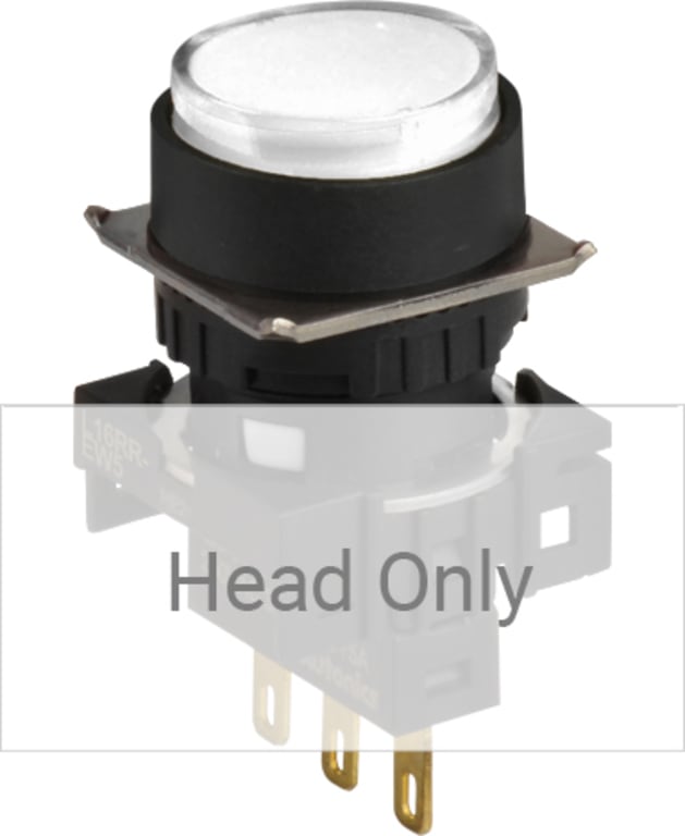 The L16RR series pilot lights are ideal for installation in compact-sized equipment and panels. The 16 mm installation hole size, 29.5 mm protruding rear-length, and independent detachable contacts allow flexible installation in limited spaces. The L16RR series is available in round, square, and rectangular head types with red, blue, green, yellow, and white color options.