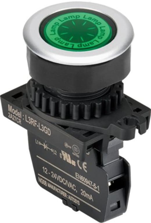 The L3RF series round type Ø30 mm pilot lights feature high luminance LEDs for easy status identification. The lights are available in various colors for use in diverse environment settings.