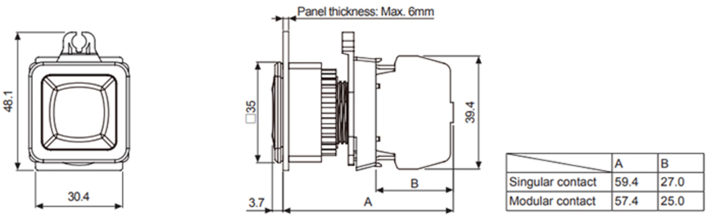 Pilot Lamps (Flush) 30mm, White, Flat Square Type Head Only