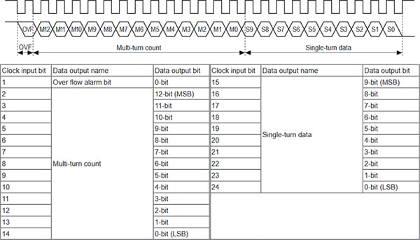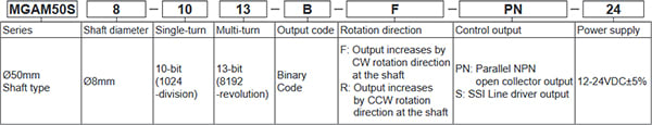 Magnetic Multi-Turn Absolute Rotary Encoder, 0mm, 8mm Shaft, Single Turn 10Bit(1024 Division), Multi-Turn 13Bit(8192 Revolution), Binary Code, Output Value Increase at CW Direction, SSI Line Drive OutPut, 12-24VDC