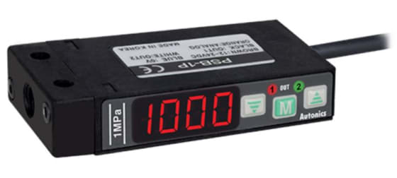 Sensor, Pressure, Standard Pressure, 3 1/2 Digit LED, Rectangular, 0 to 1000 kPa, 2 PNP/ 1-5 VDC Out, 12-24 VDC
