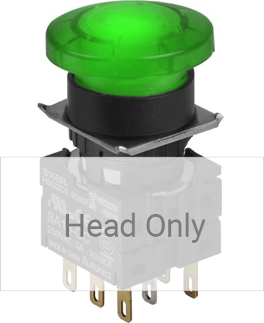 Push Button 16 Mushroom-head Type, 23.5 Head, Illuminated, GREEN, HeadRequires SA16-CCRequires SA16-L5G, SA16-L12G or SA16-L24G