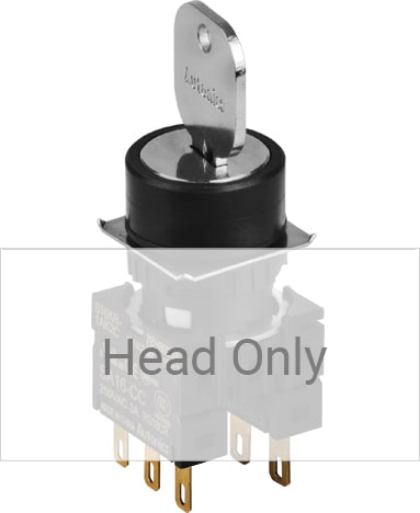 Key Selector, Non-Flush, Diameter 16 Round, 3-Positions Maintained, Left+Center+Right Key Withdraw Position, Black, Head.Requires SA16-CC