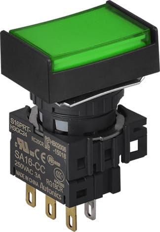 Push Button Diametor 16 Rectangular Type, Half guard, Maintained (illuminated), GREEN, Head, Normal Open Normal Close Contacts, 24 VDC LED Block