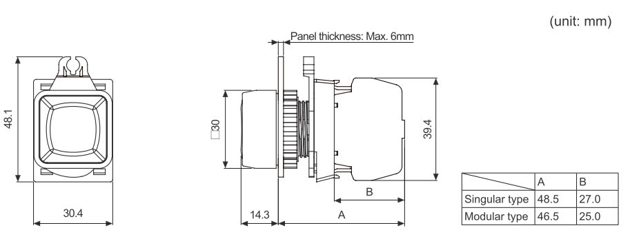 ※ ☐ indicates color: R, B, G, Y, W ※The control unit, control blocks, LED blocks are sold separately (control unit: bold letters, contact block: regular letters) ※The LED color is the same as the control unit