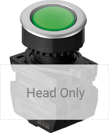Illuminated Push Button (Flush), 30, No Printing, Green, Head